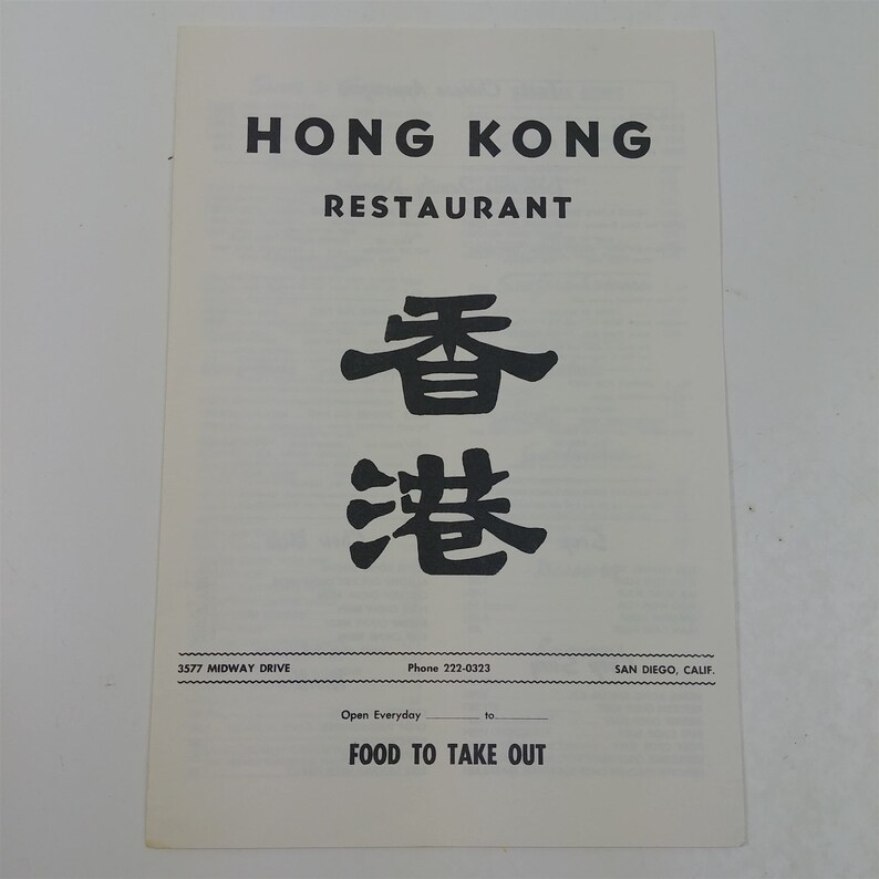 Hong Kong Restaurant Take Out Vintage Menu Chinese Food San Diego Ca Dexis Iberica Art Collectibles Collectibles